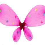 Velika rožnata krila z barvitimi motivi metuljev in svetlečim obodom. Lahka konstrukcija in pritrjevanje z elastikami za udobno nošenje.