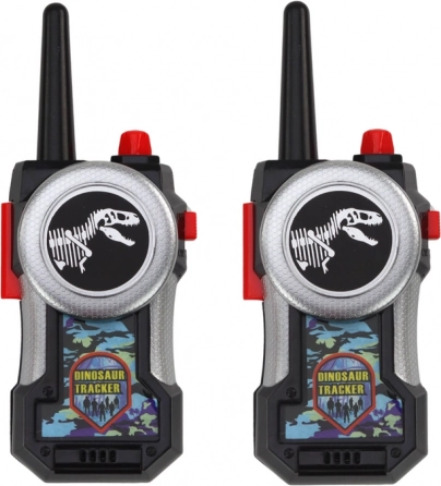 Nadomestljiva igrača za male raziskovalce dinozavrov! Ti kratkovalovni Walkie-Talkie v črno-srebrni izvedbi z rdečimi poudarki omogočajo otrokom komunikacijo na razdalji do 80 metrov in vsako zunanje doživetje spremenijo v realistični lov na dinozavre.