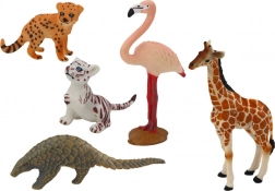 Naš set figur živali otrokom ponuja priložnost, da se potopijo v svet narave in pustolovščin. Vsebuje šest prikupnih figuric: žirafo, plamenca, dve tigrji mladički, slona in oklepničarja, vse skrbno izdelane.