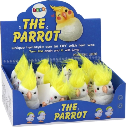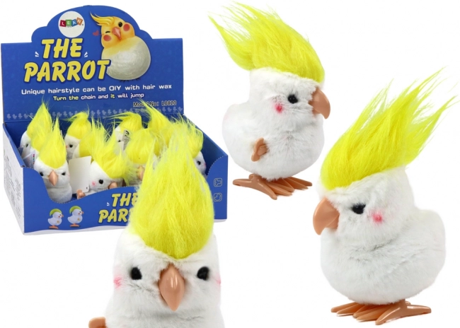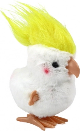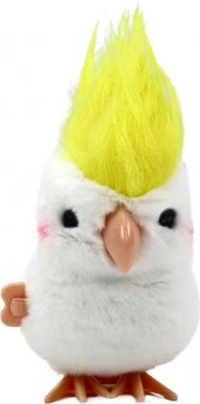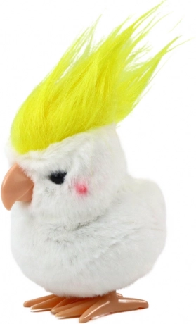 Ta navijalna plišasta papiga v slogu kakaduja navduši z mehkim belim kožuščkom in izrazitim rumenim čopkom. Odlično se poda kot drobno darilo, dekoracija na polici ali vsakodnevni spremljevalec pri igri. Po navijanju mehanizma papiga radostno poskakuje in v nekaj sekundah poživi zabavo.
