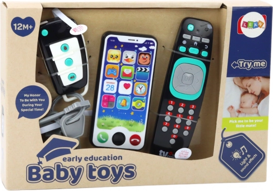 Komplet realističnih igrač, ki bo vašemu malčku prinesel veliko zabave in mu omogočil spoznavanje sveta na zabaven in poučen način! Naš komplet vsebuje avtomobilske ključe, daljinski upravljalnik in pametni telefon – predmete, ki jih otroci radi posnemajo po opazovanju odraslih.