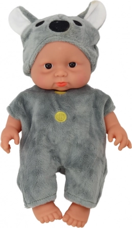 Nežno siva oprava s kapico in koala ušeski punčki doda ljubek videz ter vabi k crkljanju in nežni negi.
