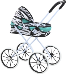 Po končani igri voziček preprosto zložite, zato ne zavzame veliko prostora in ga zlahka vzamete s seboj na pot. Elegantna kombinacija zebrastega vzorca in turkiznih detajlov pritegne pozornost in spodbuja domišljijo.