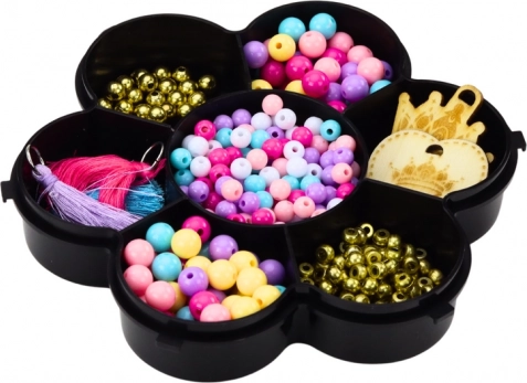 Praktičen plastični organizator v obliki cveta ohranja kroglice, cofke in lesene obeske pregledno razdeljene – vse imate pri roki, zato je ustvarjanje hitro in udobno.