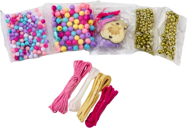 - Plastične in kovinske kroglice, leseni obeski, barvne vrvice, najlonska vrvica, plastični organizator