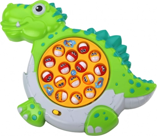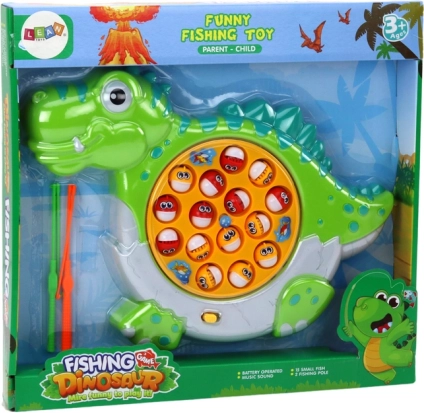 Zabavna družinska igra z motivom dinozavra prinaša ure veselja in zdravega tekmovanja. Vsebuje dve ribiški palici za igro v dvoje, vrteči ribnik in zvočne učinke. Razvija fino motoriko, koordinacijo oko–roka in potrpežljivost. Napajanje z dvema baterijama AA (nista priloženi), ima certifikat CE in izpolnjuje standard EN71.