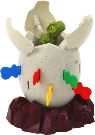 Poskakujoči dinozaver ni le navadna igrača - je izkušnja, ki prinaša nepričakovane trenutke polne veselja in presenečenja za vso družino. Postavite dinozavrsko jajce na rjavo podlago in potisnite figurice dinozavrov noter. Nato vstavljajte plastične palčke okoli jajca. Igra se zdi preprosta, vendar ko postavite palčko na pravo mesto, dinozaver nenadoma poskoči iz jajca! To prinaša zabavo in smeh za vse igralce.