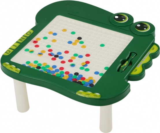 Tabla vsebuje prozoren panel, za katerim se nahajajo barvne kroglice z magneti. Kroglice v barvah črna, zelena, modra, rdeča in rumena omogočajo ustvarjanje raznolikih slik, kar podpira otroško ustvarjalnost in domišljijo. Del seta je magnetno pisalo, ki olajša ustvarjanje slik in poveča zabavo.