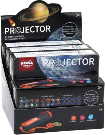 Spoznajte čarobni svet vesolja z našim projektorjem, ki vam omogoča raziskovanje zvezdnih in planetarnih sistemov kar v udobju doma. Ta prenosni projektor vsebuje tri projekcijske diske, vsak z osmimi različnimi podobami, kar skupaj nudi 24 edinstvenih vizij kozmosa.