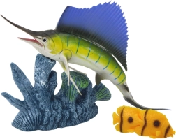 Odkrijte podvodni svet s figurico mečarice na koralnem grebenu, ki je ne le trpežna zaradi elastičnega materiala, ampak tudi realistična v vsakem detajlu.