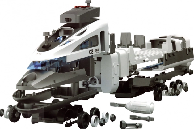 Realistično oblikovan vlak, navdihnjen z visokohitrostnimi sestavami HYPERLOOP, otroke popelje v svet železnice. Deli se zlahka privijajo in ponovno sestavijo z priloženim izvijačem z zamenljivimi nastavki – idealno za razvoj fine motorike, zbranosti in tehničnega razmišljanja.