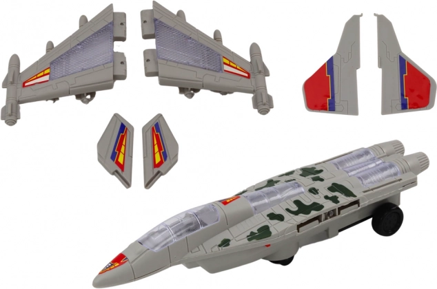 Siva kamuflaža, izrazita krila in podrobnosti oborožitve spominjajo na pravo lovsko letalo F-35. Otroci se zlahka vživijo v vlogo pogumnih pilotov in si izmislijo številne akcijske misije.