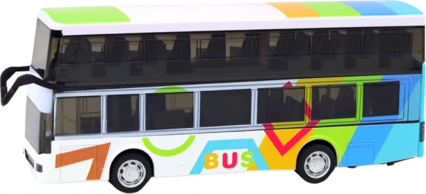 Zabavna in vzdržljiva igrača za male ljubitelje mestnega prometa: dvonadstropni kovinski avtobus z vztrajnostnim (frikcijskim) pogonom, svetlobnimi in zvočnimi učinki ter odpirajočimi se vrati in prtljažnim prostorom. Kovinska konstrukcija zagotavlja dolgo življenjsko dobo, realistični detajli pa spodbujajo ustvarjalno igro.