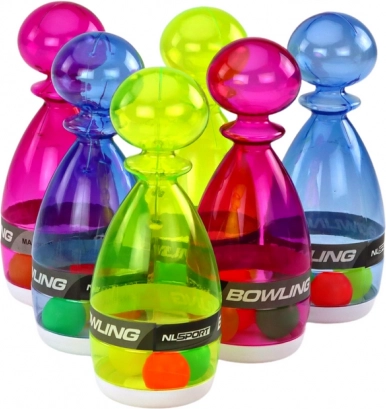 Zabavna družinska igra za doma in na prostem! Ta komplet vsebuje 6 prozornih barvnih kegljev (2 vijolična, 2 modra, 2 rumena) in ergonomsko kroglo za natančno podiranje. Trpežen material s prozornim dizajnom omogoča vpogled v kroglice v notranjosti za še večji vizualni učinek. Certifikat CE, skladno s standardom EN71, primerno za otroke od 3 let.