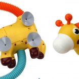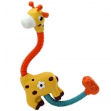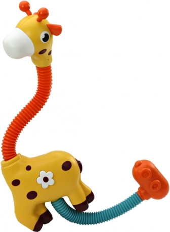 Ta barvita kopalna igrača v obliki žirafe spremeni kad v igriv svet. Fleksibilna cev s prho spominja na mini pršno glavo, zato je tok vode mogoče natančno usmeriti – idealno za udobno izpiranje las ter vodne igre. Otroci bodo kopanje vzljubili, starši pa cenili praktičnost.