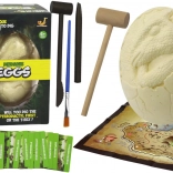 Naš unikatni arheološki komplet je zasnovan tako, da razvija otroško domišljijo in motoriko. Cilj igre je izkopati 12 skritih dinozavrov iz dinozavrskega jajca s pomočjo priloženih orodij, kot so lesen kladivček, čopiči in dleta.