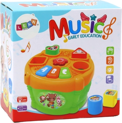 Interaktivna izobraževalna igrača za otroke v obliki bobna. Spodbuja razvoj motorike in vidnih sposobnosti preko oblik in barv.