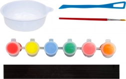 Vsebuje posodico, lopatico, čopič in šest barv za mešanje in nanos. Idealno za slikarske aktivnosti otrok.
