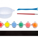 6 kalupov samorogov, 6 barv, vrečka z mavcem, posodica za mavec, mešalo za mavec, čopič