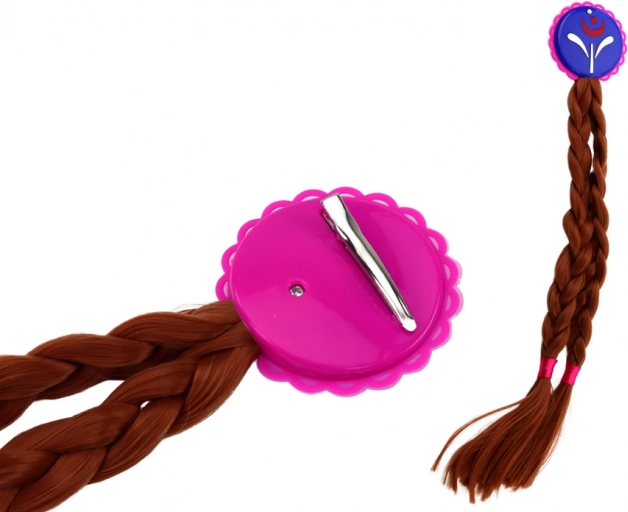 Najprej je tu lepa lasna sponka z dvema dolgima kitama, ki doda čar in eleganco vsaki pričeski. Rožnata rokavička, okrašena z modrimi bleščicami, ji daje izjemen sijaj in vaša mala princeska bo z njo zasijala na vsakem plesu.