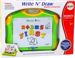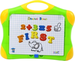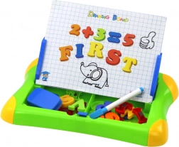 Magnetna izobraževalna tabla je idealna rešitev za otroke, ki želijo odkrivati svet črk in števil. Ta tabla ponuja zeleno magnetno površino, ki je odlično ozadje za kreativno izražanje. Zahvaljujoč priloženemu flomastru si lahko otroci zapisujejo in rišejo svoje ideje, posebna gobica pa olajša brisanje in popravljanje.