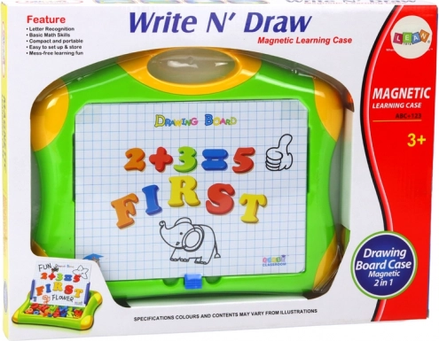 Set je opremljen z magneti v obliki črk in številk, kar otrokom omogoča, da kadar koli tvorijo besede in matematične naloge. To spodbuja njihov razvoj v zabavnem okolju.