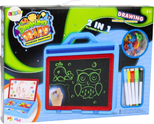 Ta velika risalna tabla je idealna za male umetnike in predšolske otroke. Ponuja risanje s pomočjo magijskih izbrisljivih flomastrov in posebnega LED svetlobnega peresa, ki v zatemnjenem prostoru razsvetli risbe. Otroci lahko na zabaven način vadijo prve črke, številke in enostavne izračune.