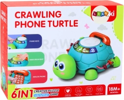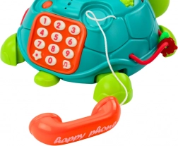 Ta igrača ima večfunkcijski telefon in tipkovnico, ki omogočata otrokom simulacijo telefonskih klicev in povečujeta realistične izkušnje z zvoki klicanja in zvonjenja. Pet gumbov na oklepu želvice ponuja možnost slišati imena številk, črk, zvoke inštrumentov in živali, pa tudi vesele melodije.
