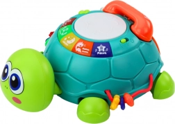 Interaktivni bobenček na hrbtu želvice s svetlobnimi učinki prispeva k senzoričnim izkušnjam in zagotavlja dodatno mero zabave in ustvarjalnosti. Gumb v obliki želvice poleg bobenčka sproži gibanje želvice, s čimer spodbuja vključevanje otroške domišljije in motorike.