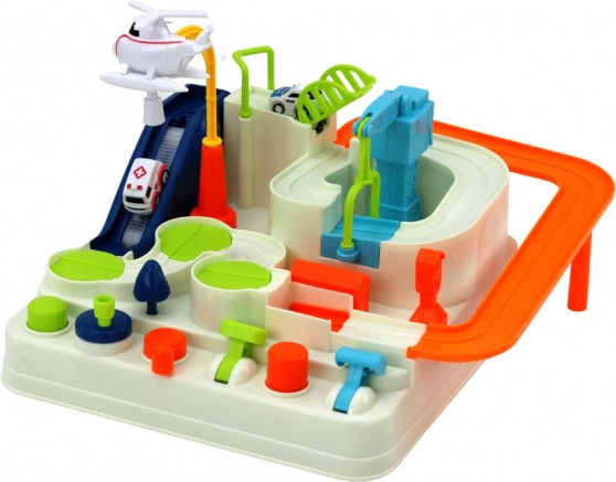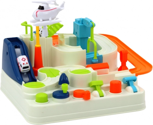 Interaktivna parkirna steza je več kot le igrača. Zasnovana je tako, da ponuja maksimalno zabavo in spodbuja otroško domišljijo. Sestavljena je iz večbarvne steze, ki otrokom omogoča z dvema avtomobilčkoma premagovati različne ovire, kot so tobogani in premični mostovi, s pomočjo posebnih gumbov in vzvodov.