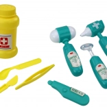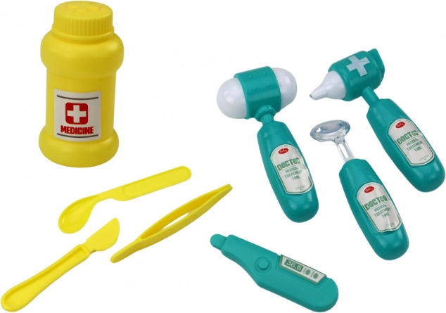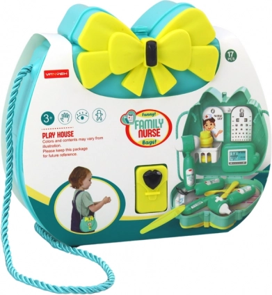 Ob odpiranju torbice otroci odkrijejo celo vrsto zdravniških pripomočkov, ki spodbujajo domišljijo in ustvarjalno igro. Komplet vsebuje termometer, otoskop in škatlico za tabletke, kar malim zdravnikom omogoča celostno skrb za paciente.