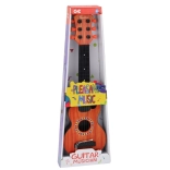 Lesena kitara je opremljena z kovinskimi strunami, ki otrokom omogočajo občutek pristne igre. Kocka v obliki srca na vrvici povečuje privlačnost in olajša upravljanje s strunami, s čimer pomaga pri učenju prvih akordov.