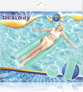 Uživajte v poletnem sproščanju na vodi z napihljivo blazino BESTWAY z merami 183 × 76 cm. Ima integriran vzglavnik za udobje, stabilno konstrukcijo in je izdelana iz odpornega PVC. Priložena je tudi popravna nalepka, zato boste brez skrbi uživali ob vsakem sončnem dnevu pri bazenu ali na plaži.