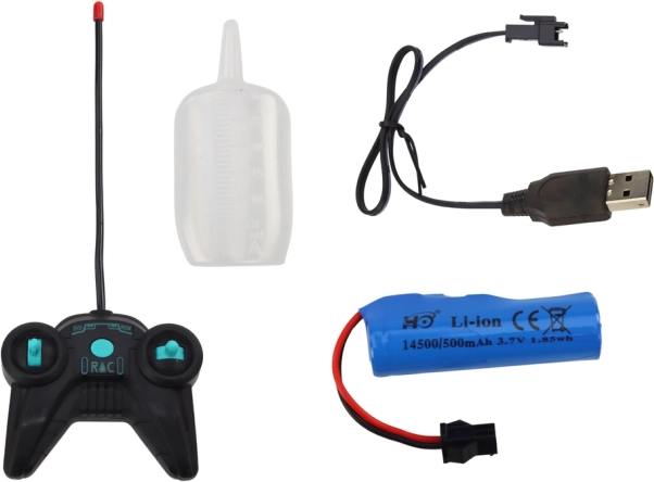 Model je izdelan iz vzdržljivih materialov za vsakodnevno igranje, zahvaljujoč gumijastim pnevmatikam pa se odlično znajde na različnih podlagah – zagotavlja boljši oprijem in gladke prehode skozi zavoje. Avto napaja polnilni akumulator 3,7 V (priložen), za polnjenje pa služi priložen USB kabel. Daljinski upravljalnik zahteva 2× AA bateriji (nista priloženi).