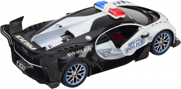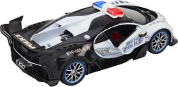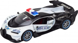 Podajte se v akcijo z belim RC policijskim avtom, ki zvesto posnema športno vozilo z avtentičnimi nalepkami in svetlobno signalizacijo. Upravljalnik s palicami omogoča gladko zavijanje, pospeševanje in zaviranje, zato je vožnja maksimalno realistična. Svetlobni efekti še poudarijo vzdušje policijskih pregonov.