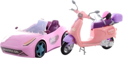 Rožnat avto (33 cm), realističen skuter (30 cm) in kolo (17 cm) omogočijo punčkam izlete v mesto in park. Preprosti za upravljanje in spodbujajo dinamično igro.