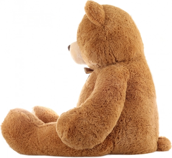 Ta ekstra velik plišasti medved prinaša veliko veselja, udobja in občutka varnosti. Zahvaljujoč puhasti polnitvi in žametno nežni površini je odličen za objemanje, branje pravljic in počitek. Stilska mašna medvedku doda eleganten videz, zato bo postal čudovit poudarek vsake otroške sobe.
