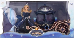 Čarobni komplet za male princese vsebuje punčko, konja in kočijo – vse pripravljeno za pravljične vožnje. Kočija na baterije ima utripajoče luči, konj pa se po vklopu resnično premika. Idealno darilo za otroke od 3 let, ki spodbuja domišljijo in ustvarjalno igro.