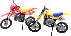 Motorji imajo prosto vrteča se kolesa, stojala za stabilno parkiranje in privlačne dirkaške potiske. Mešanico barv dobavljamo glede na zalogo, zato je lahko vsako pakiranje presenečenje. Praktično blister pakiranje je idealno kot darilo.
