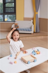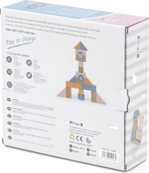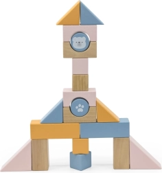 20 kock v različnih pastelnih barvah in oblikah podpira kreativno gradnjo in razvoj ročnih spretnosti.