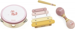 Glasbena garnitura PolarB znamke VIGA je zasnovana za otroke stare od 12 mesecev naprej. Vsebuje tri glasbene instrumente: tamburin, ksilofon in dvojno marakas. Vsak instrument je narejen iz lakiranega lesa in je pobarvan z netoksičnimi barvami. Ta komplet je idealen za razvoj kreativnosti in glasbenih spretnosti.