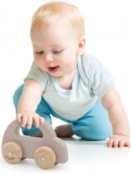 Leseni avtomobilček na potiskanje je popolna igrača za otroke že od šestih mesecev. Zaradi preprostega dizajna in prijetnih pastelnih barv ga majhne ročice zlahka primejo. Kolesa avtomobilčka so tiha in zagotavljajo gladko gibanje med igro. Avtomobilček je varen zaradi zaobljenih robov in je prebarvan z nestrupenimi barvami.