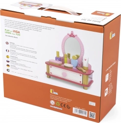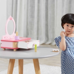 Lesena toaletka Viga ponuja ogledalo in prostoren predal, kjer lahko male princese hranijo svoje dragocenosti. Roza izvedba daje izdelku eleganten videz in se odlično vključi v otroško sobo.