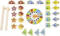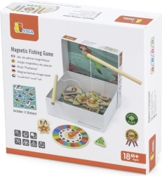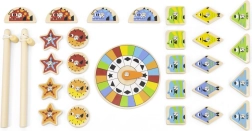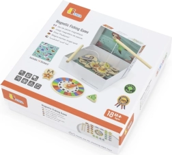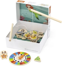 V paketu najdete 2 magnetni palici, 26 pisanih ribic in vrtljivo kolesce, ki določi barvo ali obliko ulova. Odlično za solo igro ali tekmovanje dveh igralcev.