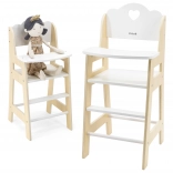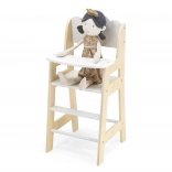 Ta stilski stolček iz kombinacije naravnega lesa in bele barve je odličen dodatek za vse male skrbnike. Otroci lahko punčke udobno “hranijo”, zanje skrbijo ter razvijajo domišljijo in socialne veščine. Stolček je namenjen punčkam do 38 cm in je primeren od 3 let.