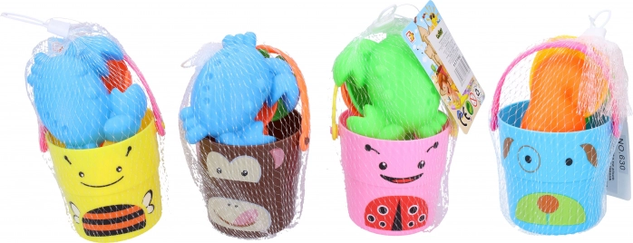 - Komplet vsebuje vedro z veselimi motivi živalic, ki je odlično za prenašanje peska ali vode.