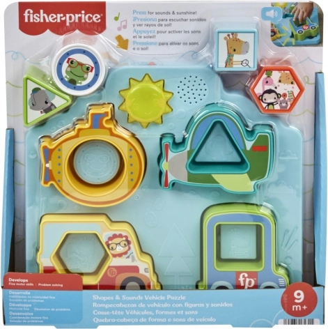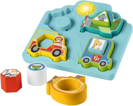 Interaktivna izobraževalna igrača znamke Fisher‑Price združuje razvrščanje oblik in sestavljanje sestavljanke z veselimi zvoki prevoznih sredstev in živalic ter lučkami. Otroci pri igri razvijajo fino motoriko, koordinacijo oko–roka in prepoznavanje oblik. Primerno za starost 9m+.