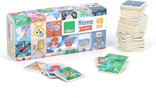 Vilac Leseno spomin je idealen za otroke, ki imajo radi barvite ilustracije in zabavne igre. Te igralne kartice, ki so popolnoma prilagojene majhnim otroškim rokicam, pomagajo razvijati besedni zaklad, spomin in smisel za opazovanje.