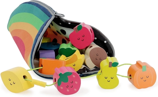 Lesene ogrlice za natikanje, ki so idealne za majhne otroke od 18 mesecev dalje. Ta igrača pomaga otrokom razvijati fino motoriko in koordinacijo. Čudovite ilustracije Andyja Westfacea naredijo natikanje teh kroglic zabavno. Otroci se naučijo prepoznavati barve in oblike ter hkrati bogatijo svoj besedni zaklad.