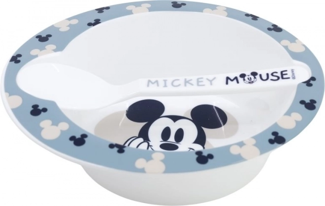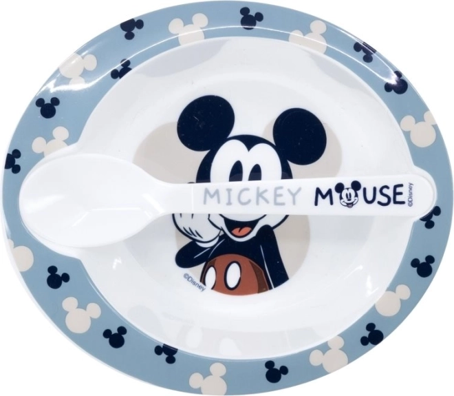 Odlična izbira za otroke, ta jedilni set z najljubšim motivom Miki Miške vam bo polepšal vsak obrok. Praktični set vključuje:
